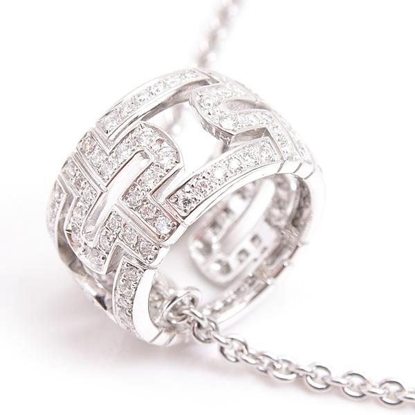 ブルガリ BVLGARI 750WG パレンテシ フルダイヤ ペンダント ネックレス 中古AB級品