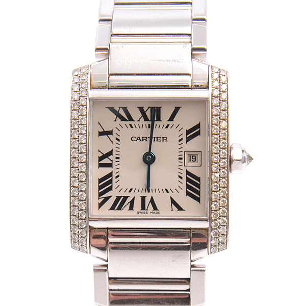 カルティエ Cartier 750WG タンクフランセーズMM 2重ダイヤベゼル 電池式 アイボリー文字盤 中古AB級品