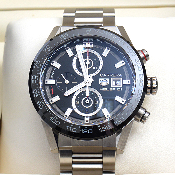 タグホイヤー TAG Heuer カレラ キャリバー01 ブレスタイプ 自動巻 ブラック文字盤 CAR201Z 中古A級品