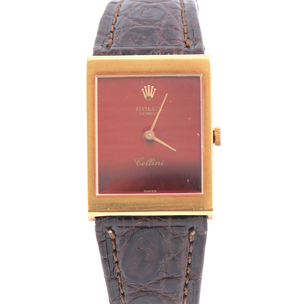 ロレックス ROLEX 750YG アンティーク チェリーニ 手巻 レッド系文字盤 中古AB級品