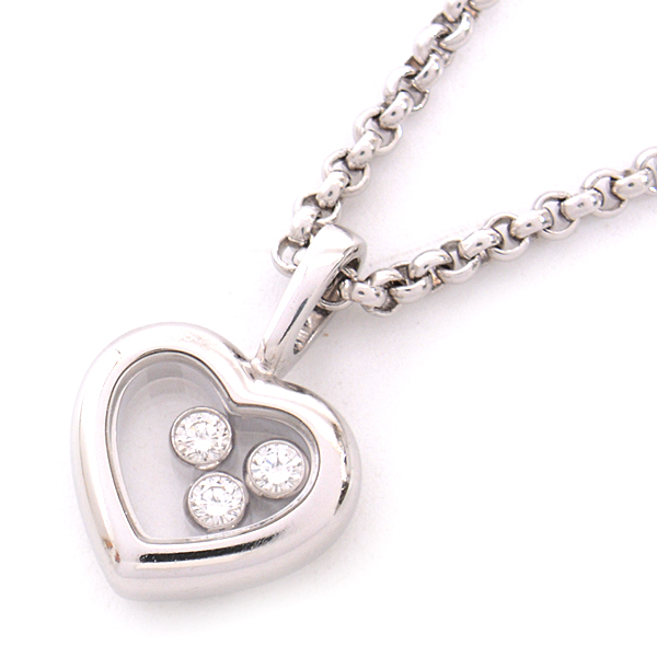 ショパール Chopard 750WG ハッピーダイヤ 3Pダイヤ ハート ネックレス 中古AB級品